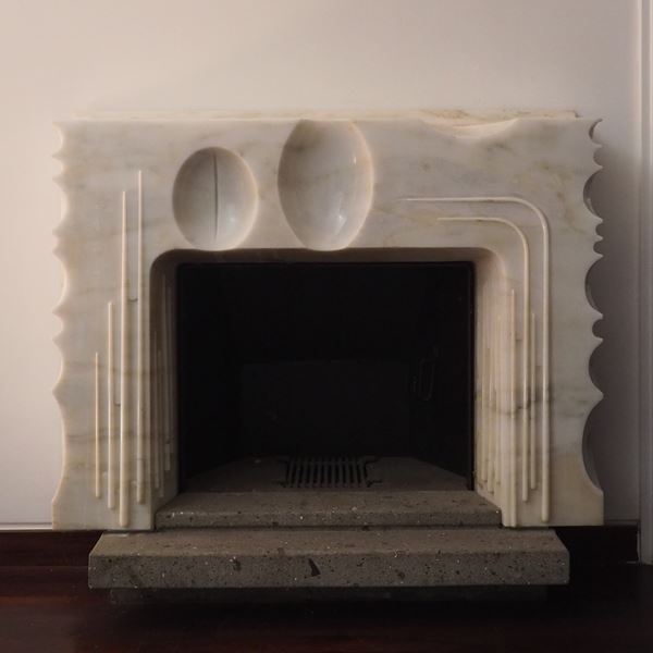 White marble wall fireplace, mid 20th century
