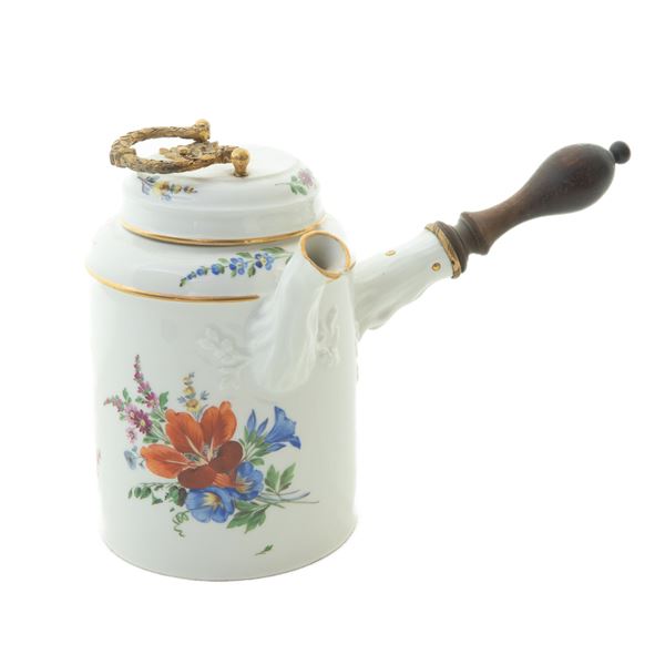 wooden handle, flower decoration, cylindrical body. Marked Meissen, first half of the 20th century