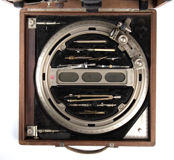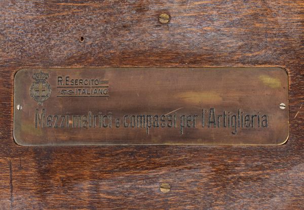 Brand La filotecnica; Inscription on a plate on the front bearing the words: Metric means and compasses for artillery; Royal Italian Army.