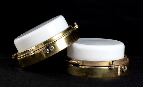 Pair of original ceiling lights from ship demolition