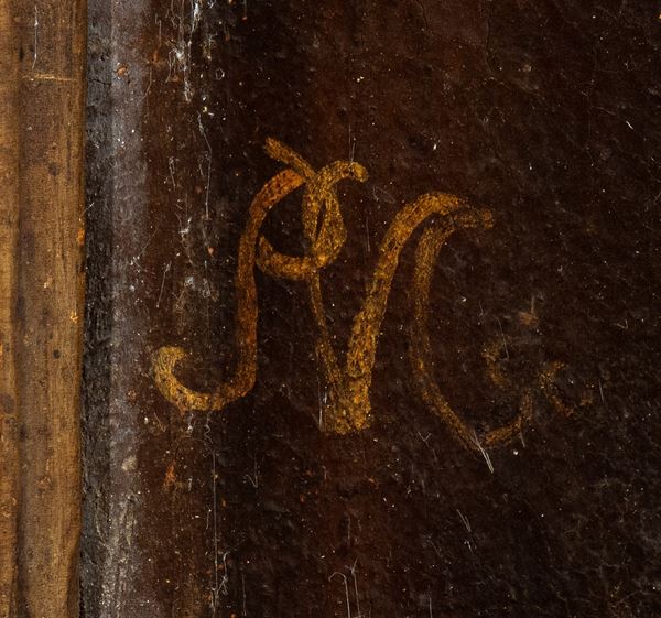 The painting bears a brush stroke mark in the bottom right-hand corner with the painter's crossed initials to read: โMRโ.