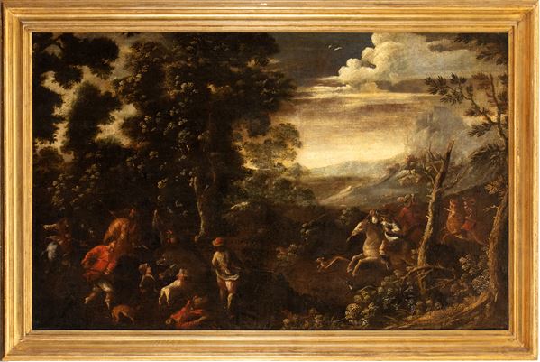 Landscape with hunting scene