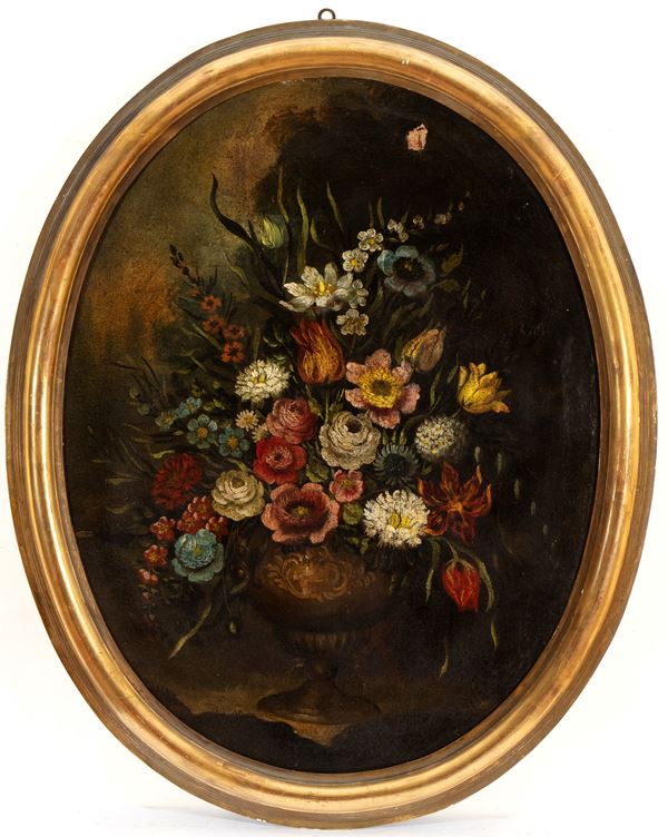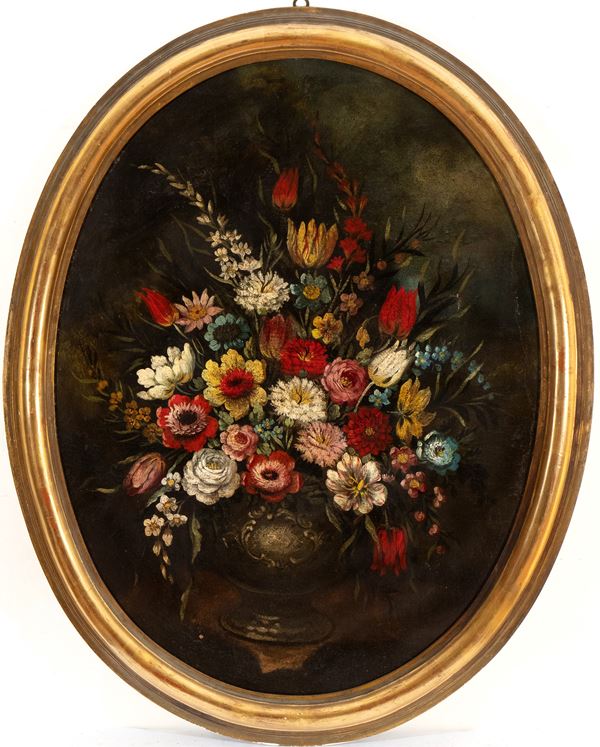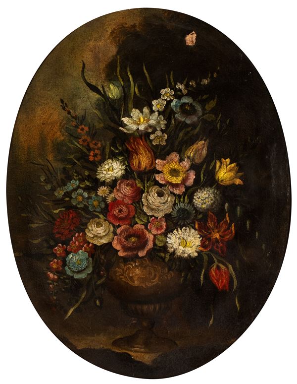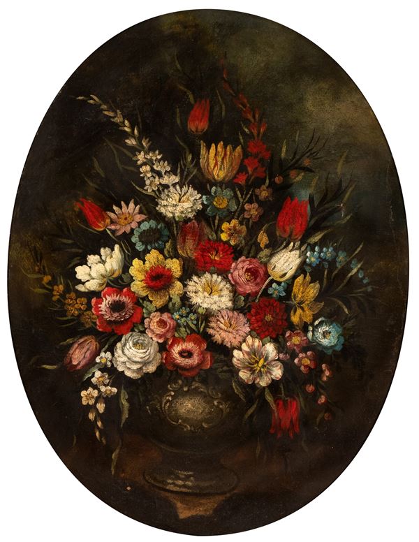 a) Bouquet of flowers in a metal vase; b) Bouquet of flowers in a metal vase. Pair of paintings
