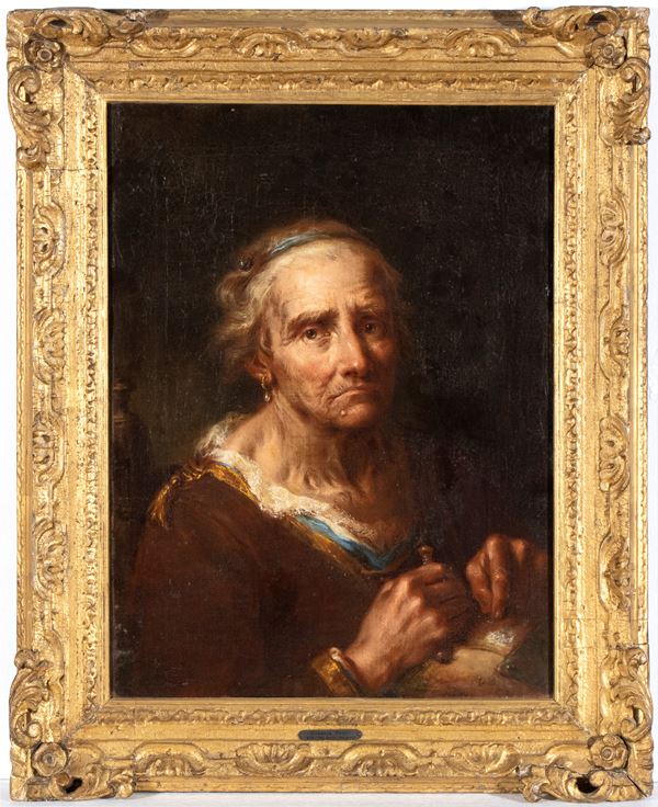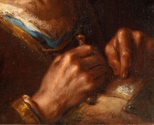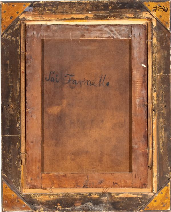 The canvas bears on the back the brushstroke inscription: "SOI FARINELLO", reproduced from the original canvas on the relined one, which testifies to the presence of the work in the collection of the famous castrato singer Carlo Maria Broschi, universally known by the pseudonym Farinelli or Farinello, and which can be found in other works he owned.