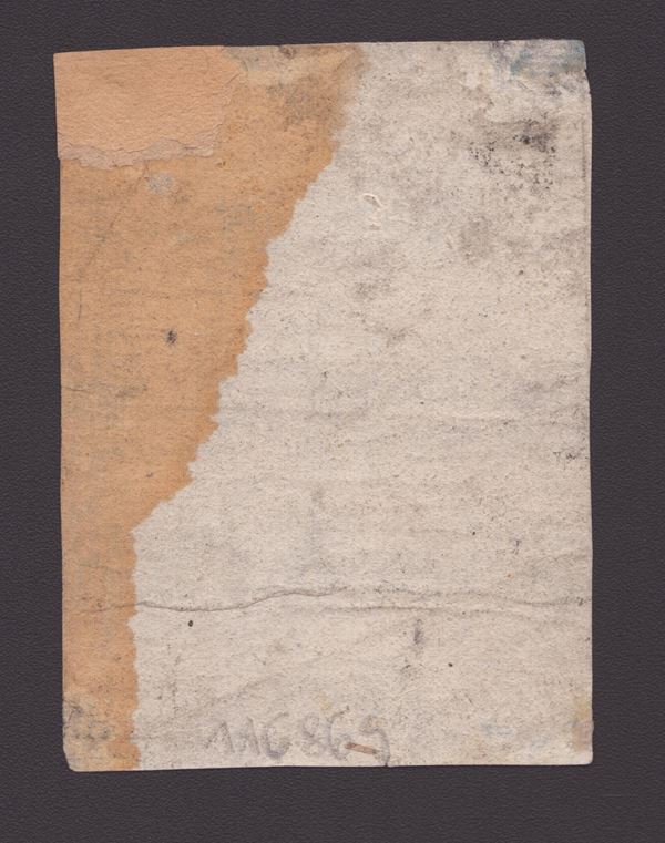 Printed on thin laid paper, trimmed, missing the lower margin with inscription. A brown stain extends on the right side.