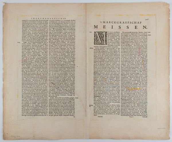 Etching and engraving, 540 x 652 mm. Map of the Margraviate of Meissen (Thuringia), in the area of present-day Saxony.