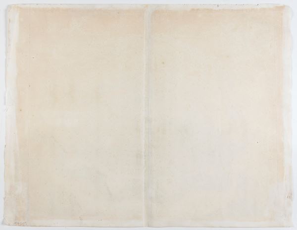 Fine impression on laid paper with large watermark. Good condition, except for display discoloration, some light stains and wear along the edges. Trace of the usual editorial fold.