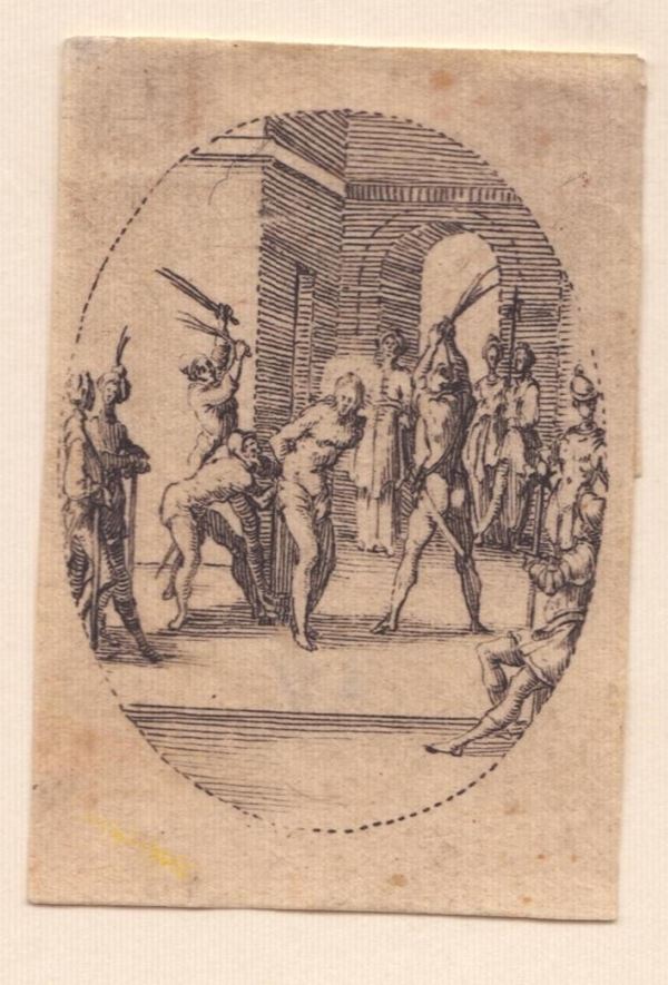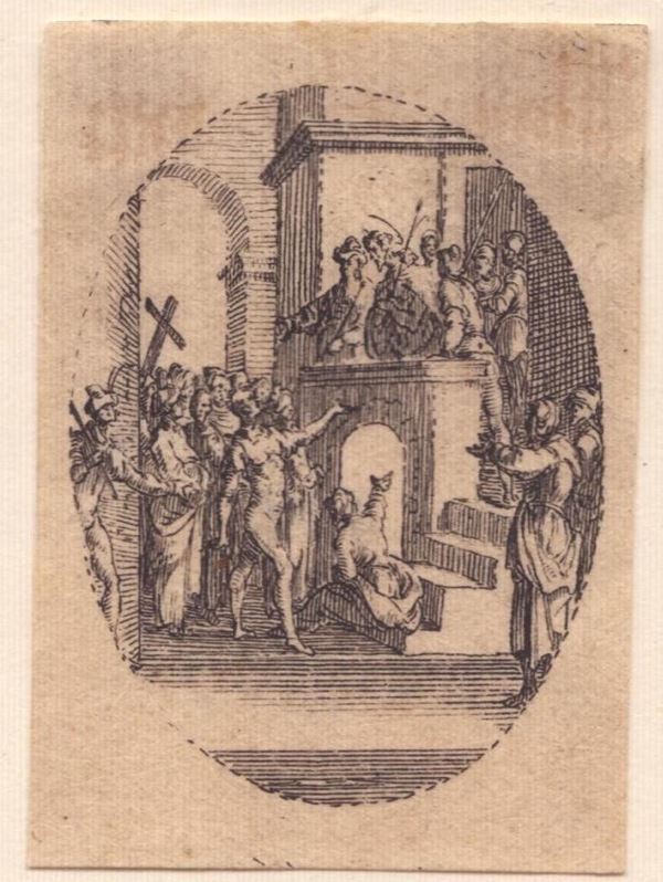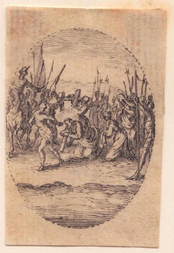 Jesus before Pilate (Lieure 680), The Flagellation (Lieure 681), Jesus falls under the cross (Lieure 684), Jesus presented to the people (Lieure 691), The Assumption into Heaven (Lieure 695.)