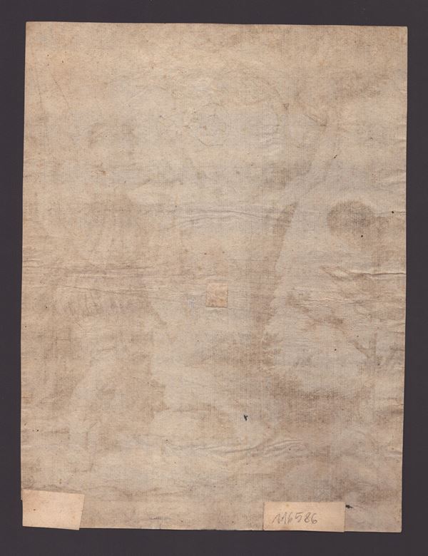 Fine impression on thin laid paper with watermark (Key). With missing parts on the lower margin, backed on the verso, and another small restoration in the center of the composition. The paper is slightly browned, but otherwise in good condition.