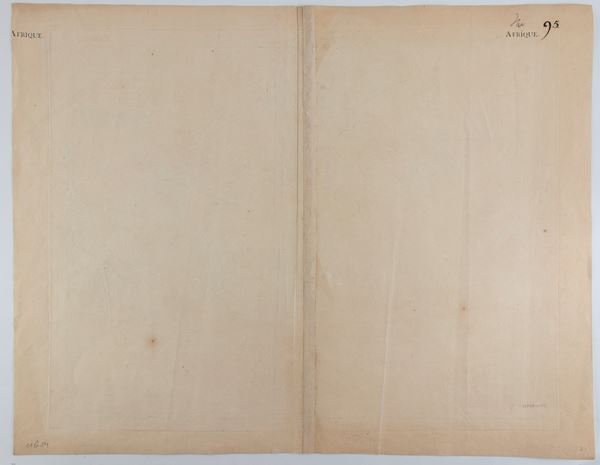 Engraving and etching, 553 x 710 mm (sheet). Detailed map of Africa, published in Paris by De Vaugondy in his Atlas Universal.