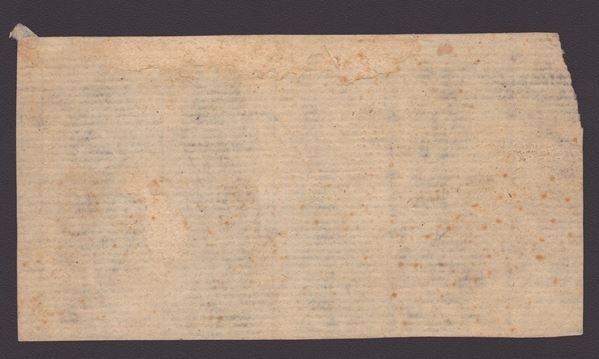 Fine impression printed on thin laid paper. Trimmed sheet, with a fragment missing at top left. Uniformly browned, with signs of foxing.