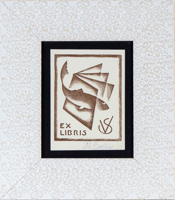 Vanni Scheiwiller was an art critic and publisher from Milan. The ex libris refers to his publishing house All'insegna del Pesce d'Oro.