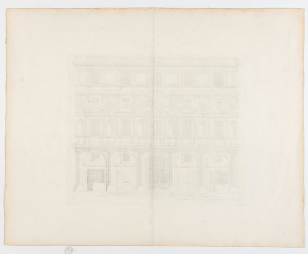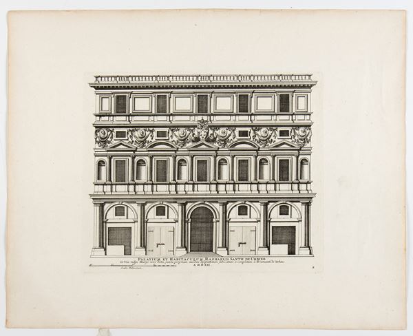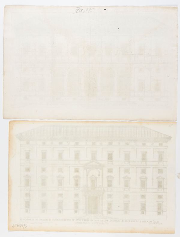 Lot of three plates from "Palaces of Rome of the most celebrated architects, designed by Pietro Ferrerio painter and architect". Engraving, 270 x 414; 267 x 402; 394 x 492 mm.