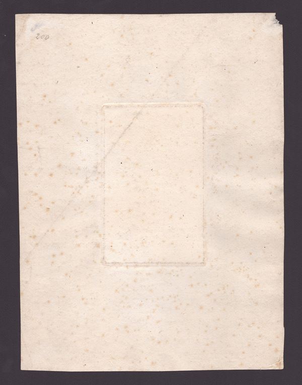 Fine, crisp and deep impression on chine-collé. In very good condition except for foxing on the thick backing paper and small lack in the upper left corner.