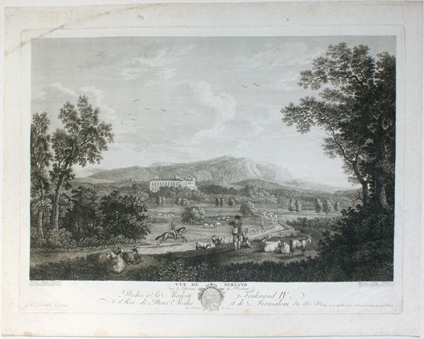 Lot of two engravings after Jacob Philipp Hackert's paintings, today in the collection of the Royal Palace of Caserta: