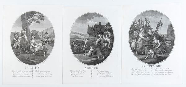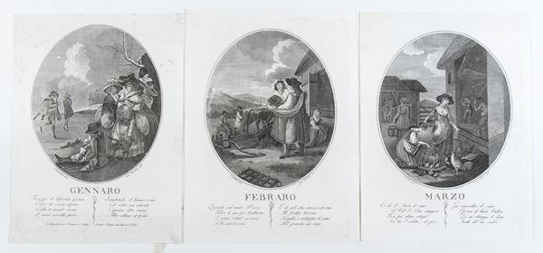 Lot of 12 prints engraved by Gennaro Bartoli (active mid-19th century). Engraving and etching, approx. 320 x 240 mm (each sheet).