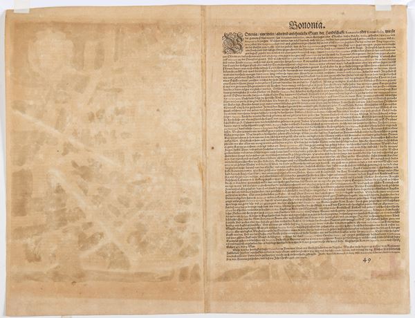 Engraving, 392 x 506 mm. Plan of Bologna taken from Braun and Hogenberg's Civitates Orbis Terrarum.