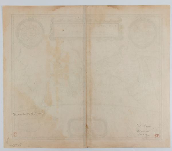 Etching and engraving, 448 x 523 mm. Map of the Indian Ocean, known in antiquity as the Erythraean Sea.
