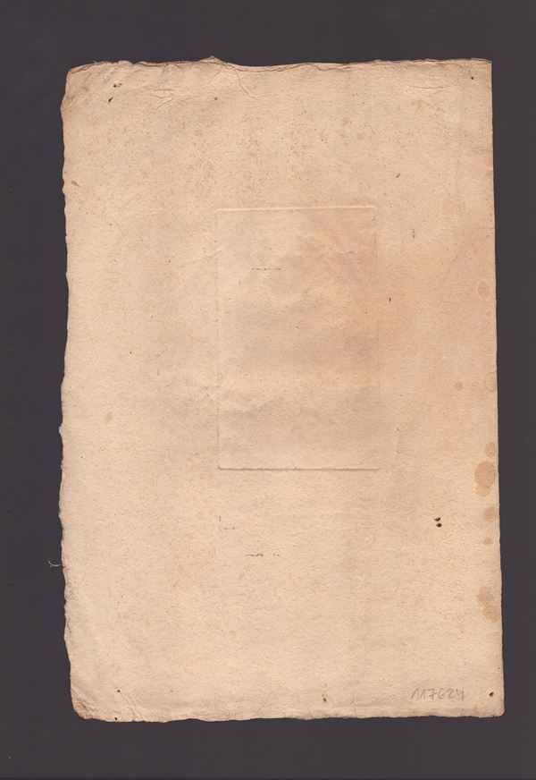 Late impression printed on laid paper, sheet with large margins, in good condition except for uniform browning.