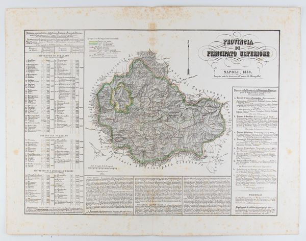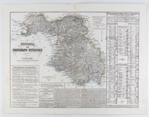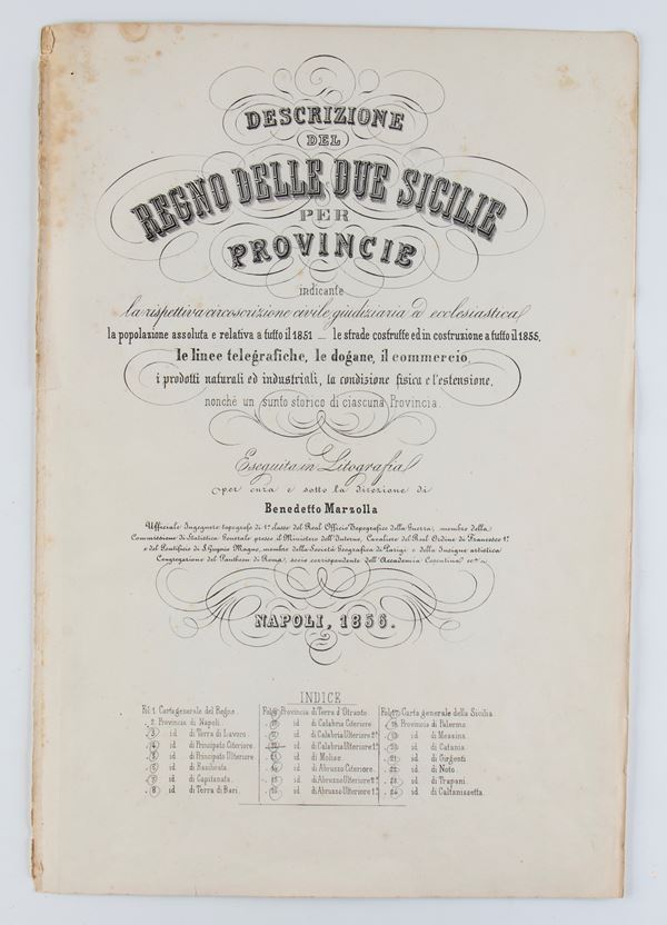 Lot of 21 maps from the Marzolla cartographic atlas, depicting the provinces of the Kingdom of the Two Sicilies, including: Basilicata, Bari, Otranto, Calabria, Molise, Abruzzo, Palermo, Messina, Catania, Trapani.