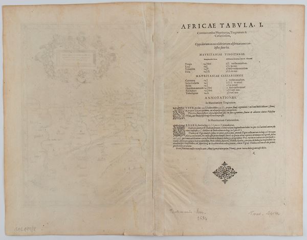 Etching and engraving, approx. 410 x 510 mm each sheet. Lot of two maps of Africa by Mercator, based on the work of Ptolemy, with the territories of Morocco and Tunisia (plate I) and Libya and Ethiopia (plate III).