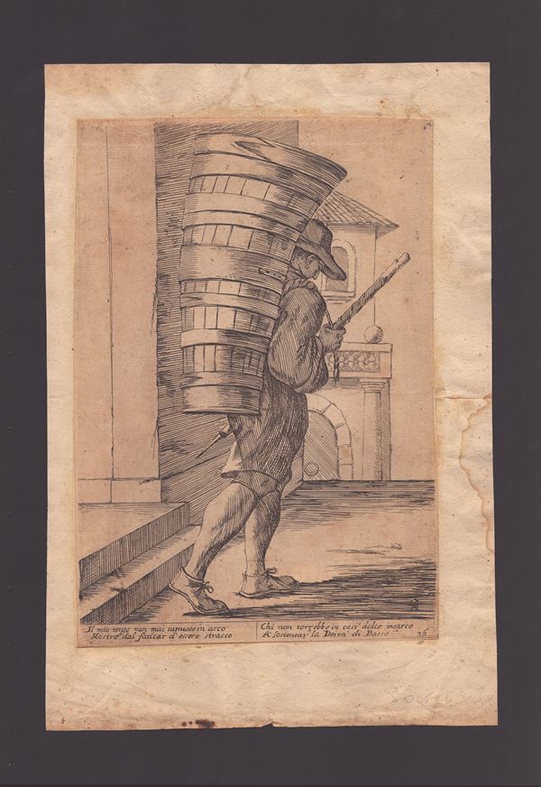 Crisp impressions on laid paper. Backed on another sheet of paper, in good general condition.