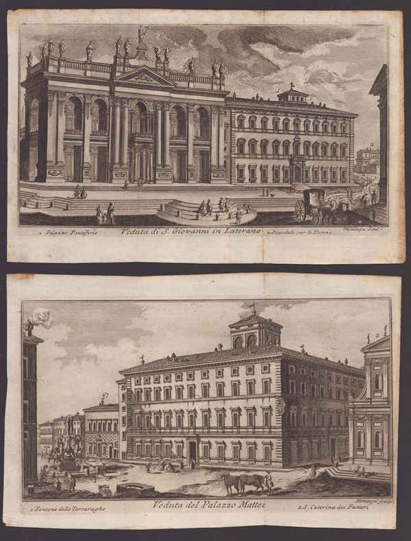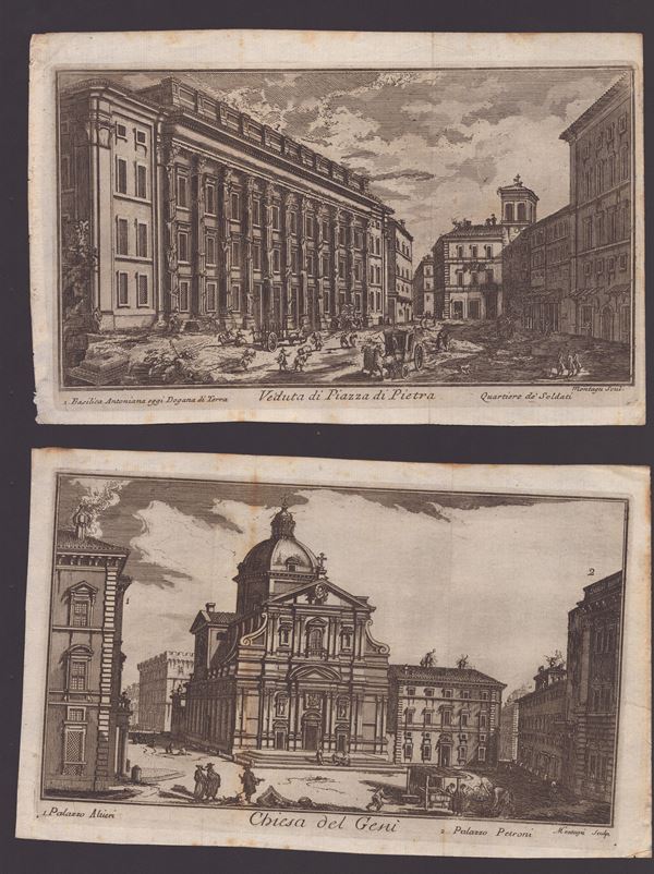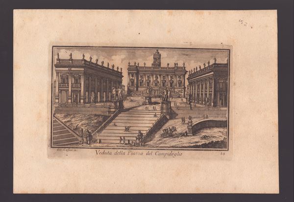 8 plates from "New collection of the best ancient and modern views of Rome drawn and engraved by Giovanni Cassini" (1779). Etching, 270 x 388 mm (approximately each sheet). Fine impressions on laid paper. In very good condition, except for some signs of foxing.