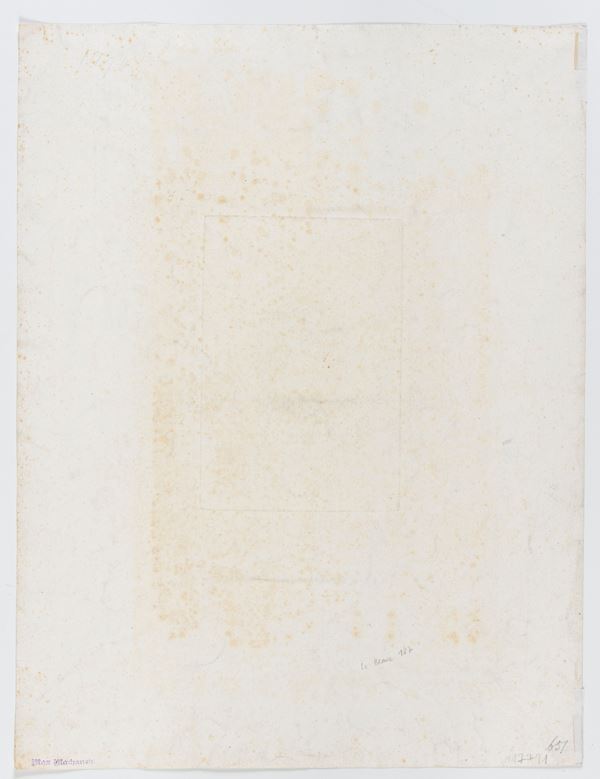 Fine impression on laid paper with a fragment of watermark (letters ACC). The sheet is in very good condition, except for some foxing, a small tear on the lower margin restored on the verso and a thinning at the top left.