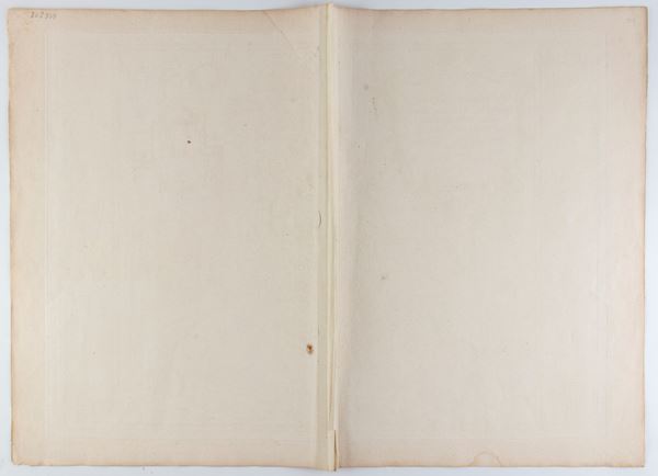Very nice impression on laid paper with double watermark. Sheet with usual editorial fold, in very good condition, except for browning, a stain on the lower margin and a small stain in the center. Wide margins.