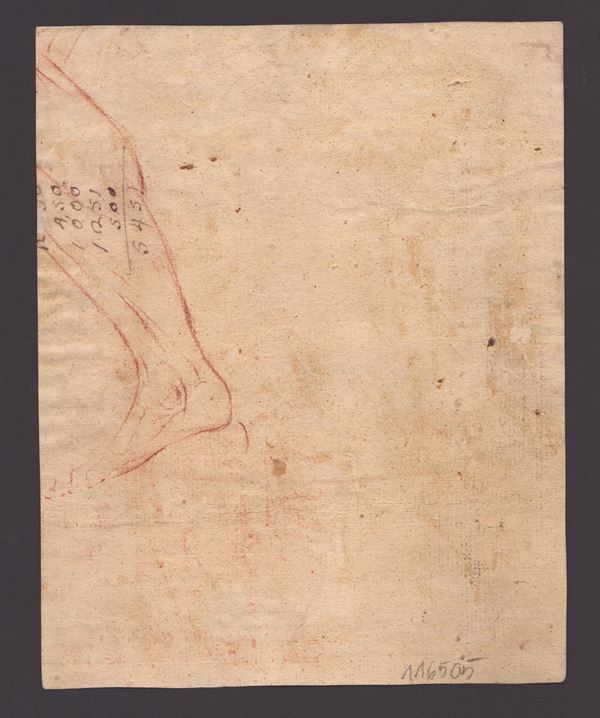 Fine impression on laid paper. Copy with small margins beyond the platemark. On the verso, fragment of drawing in red chalk and inscriptions in ink. Sheet in very good condition.