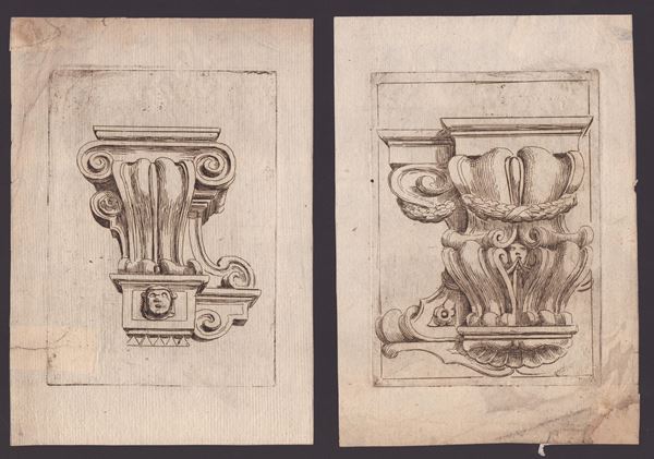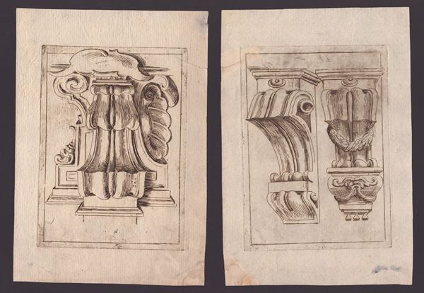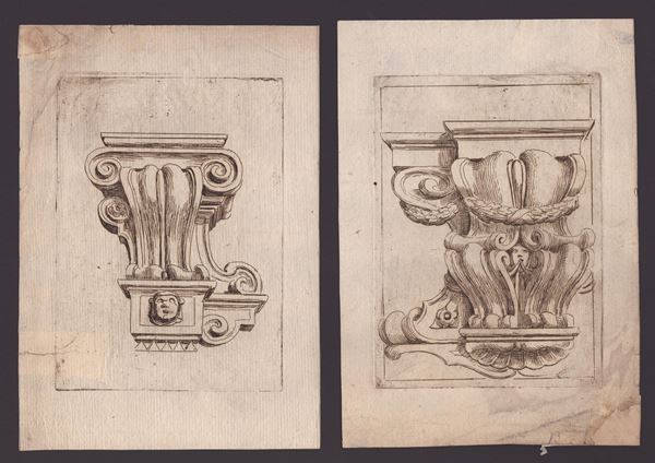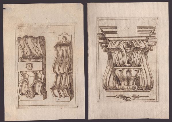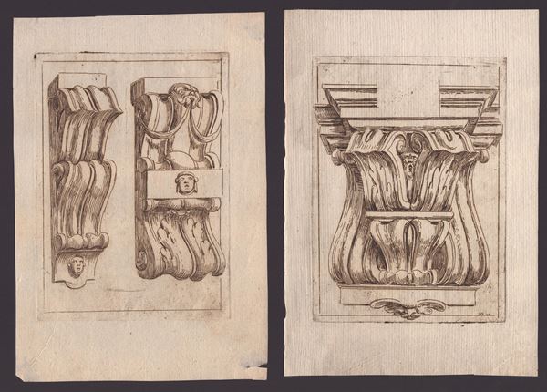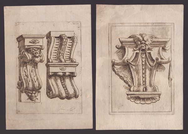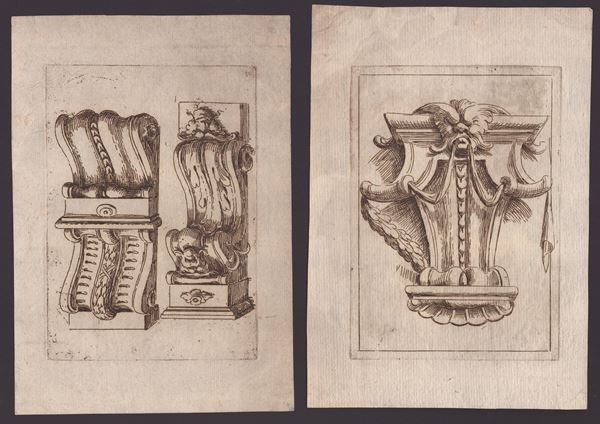 Complete work of 12 etching plates (including frontispiece), approx. 160 x 115 mm (each plate), 220 x 152 mm (each sheet). Catalogue of the Ornamental Collection of the Staatlichen Kunstbibliothek Berlin 576 (1).