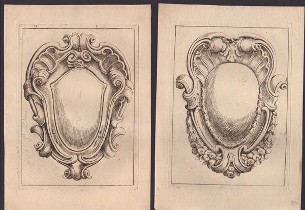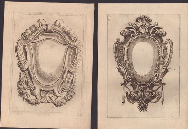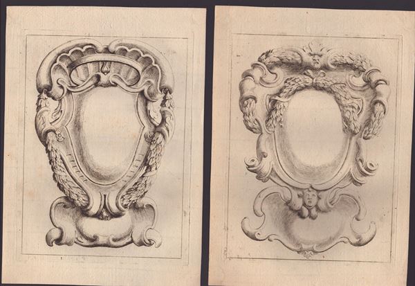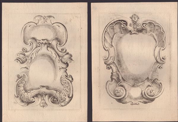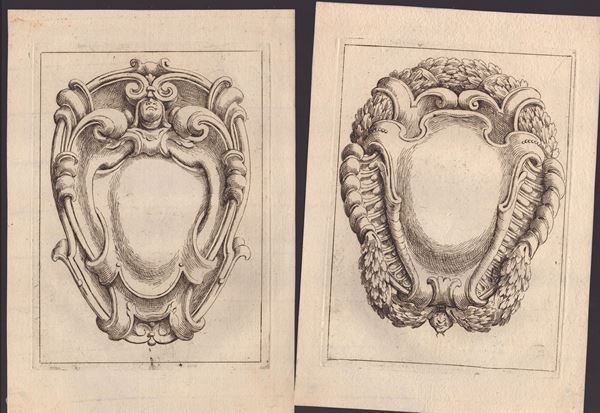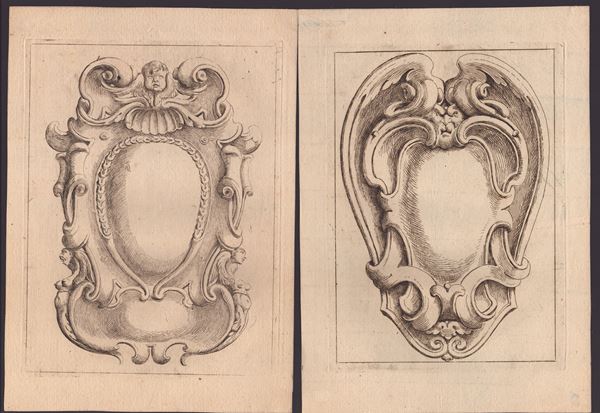 Total of 25 plates from Campi Ornati Opera Seconda and Campi Ornati Opera Terza. Etching, approx. 240 x 170 mm (each plate), 290 x 208 mm (each sheet). Catalogue of the Ornamental Collection of the Staatlichen Kunstbibliothek Berlin 577 (2) and (3). 11 plates from the volume Campi Ornati Opera seconda are reproduced in The Illustarted Barstch: vol, 42, no. 218. 3-7, 9-14.