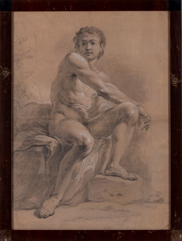 Lot of two drawings. Pencil and white lead on brown paper, approx. 545 x 395 mm. With frames