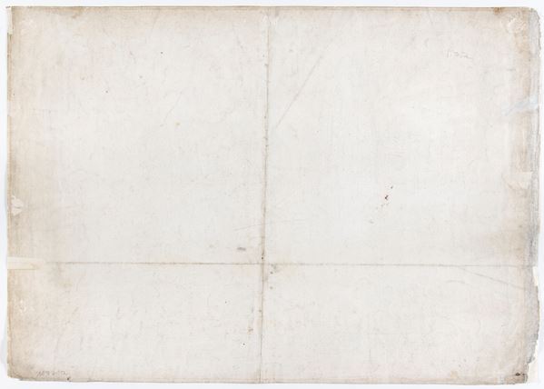 Clear impression on laid paper with watermark (a lily on three mountains in a double circle with the letters A and N). The sheet, with small margins beyond the platemark, shows traces of a vertical and a horizontal fold, as well as various wears, losses and tears along the edges, especially the right and left ones, restored on the verso.