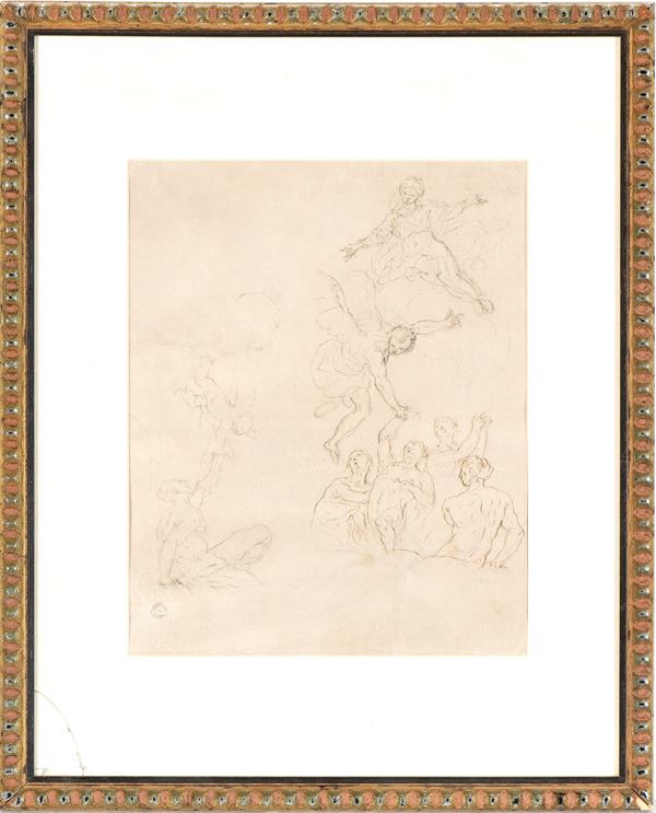 Pen, brown ink and black pastel on laid paper prepared with a fragment of watermark (Fleur-de-Lis inscribed in a shield, bearing the inscription "CI & Honig" (Holland, 1790s)), cm. 32x26. With frame