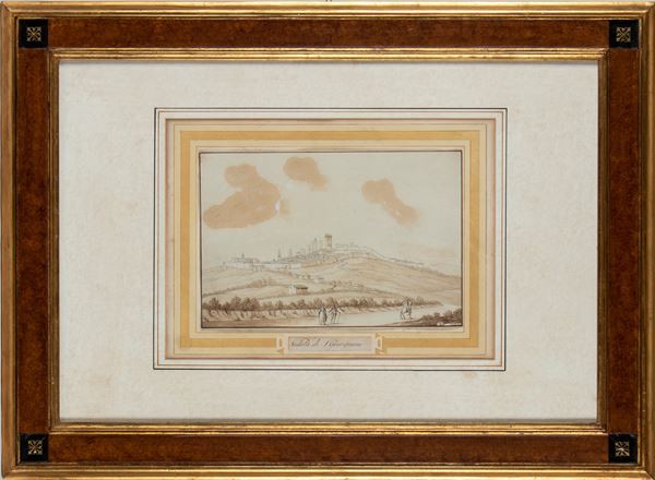 Brown ink, pen and watercolour on paper. 230 x 340 mm. With contemporary passe-partout and frame (62 x 87 x 3 cm)