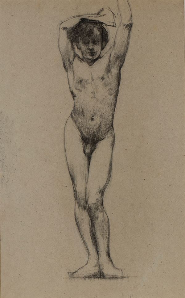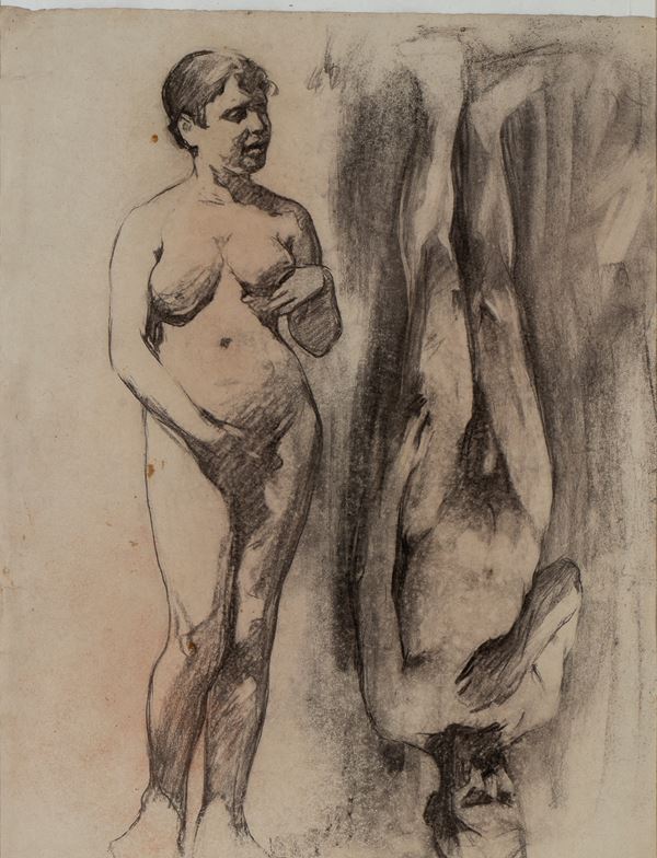 Lot of three drawings. Charcoal on paper, approx. 56 x 42 cm (each sheet). One drawing signed lower right. Two with the exhibition stamps of "Giardino Antiquario", Trieste.