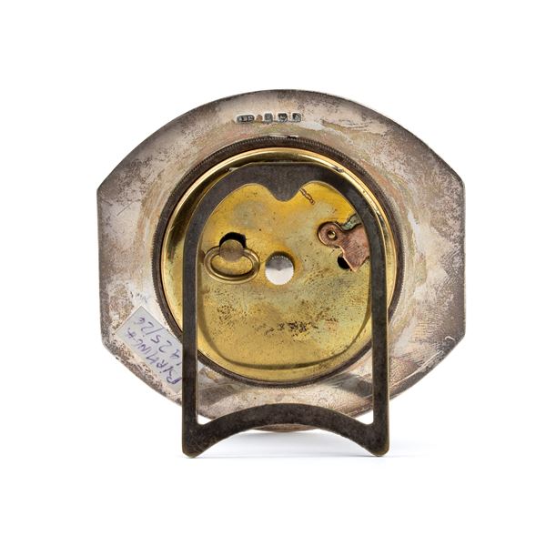 Art Déco sterling silver and enamels table clock, Birmingham, 1925