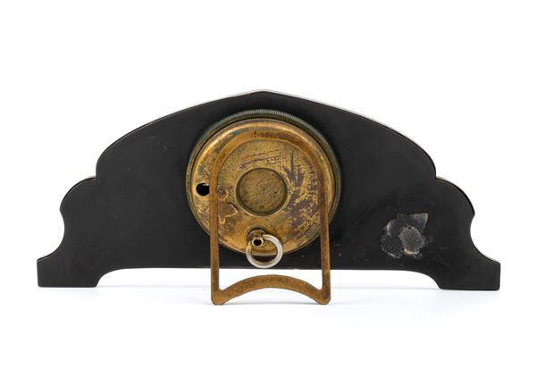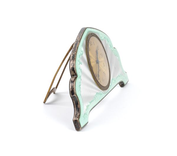 Art Déco sterling silver and enamels table clock, Birmingham, 1929