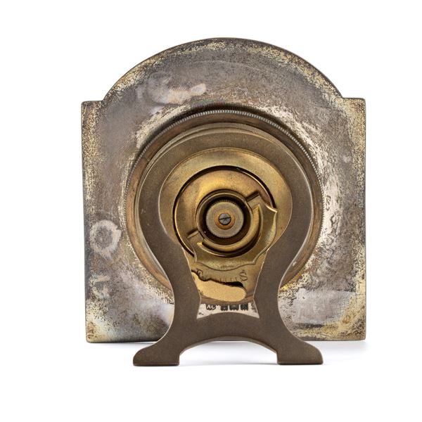 Art Déco sterling silver and enamels table clock, Birmingham, 1929