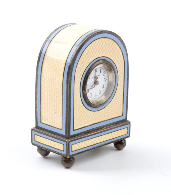 Art Déco silver and enamels table clock, 1920s - 1930s