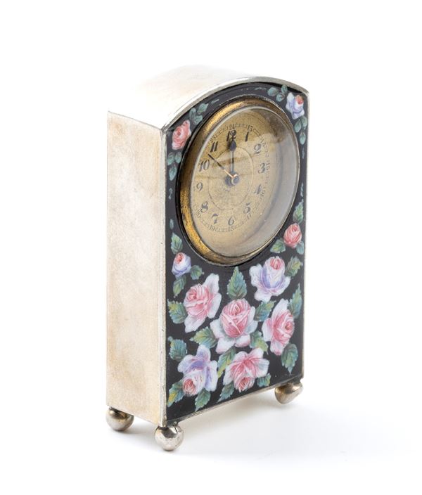 Art Déco silver and enamels table clock, Germany, 1920s - 1930s