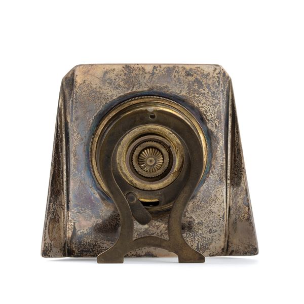 Art Déco sterling silver and enamels table clock, Birmingham, 1934