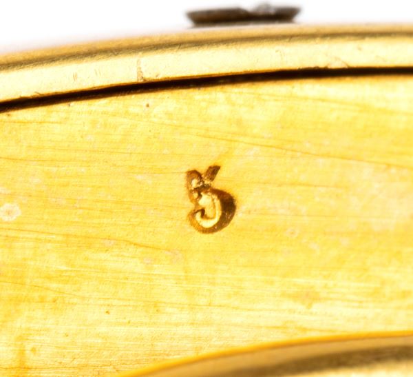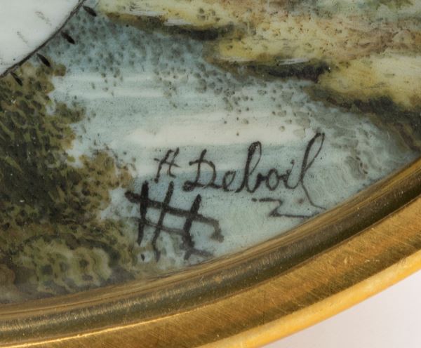 Oval brass case, dial painted with a river landscape with Arabic numerals and luminescent hands, signed lower right H Debroil.