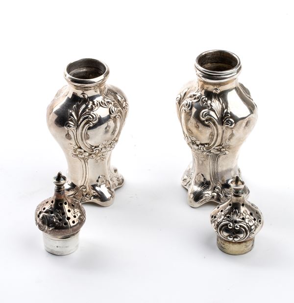 Pair of Art Nouveau sterling silver salt shakers, USA, early 20th century