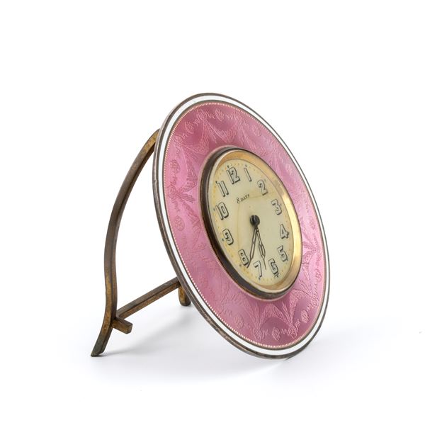 Art Déco sterling silver and enamels table clock, Switzerland, 1920s - 1930s