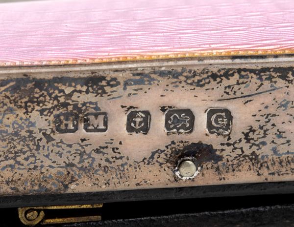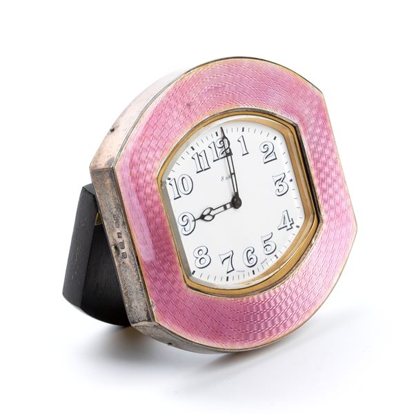 Art Déco sterling silver and enamels table clock, Birmingham, 1931