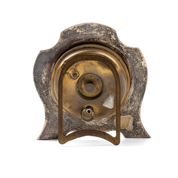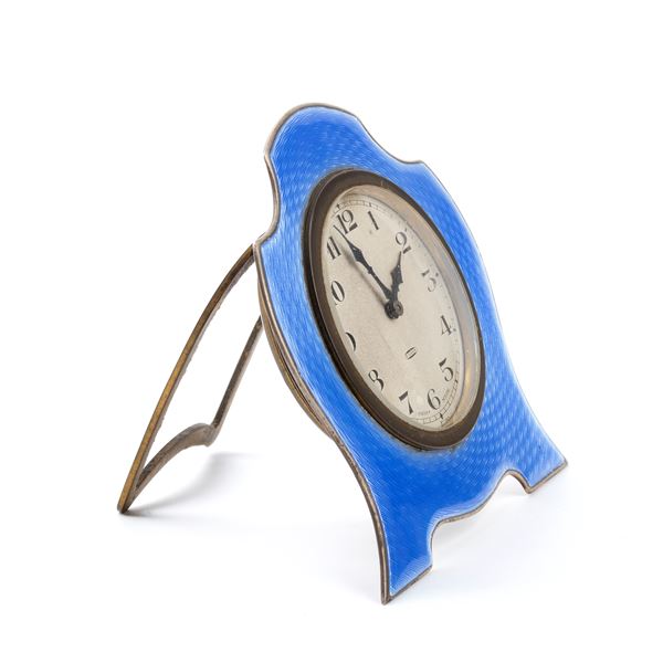 Art Déco sterling silver and enamels table clock, Birmingham, 1929