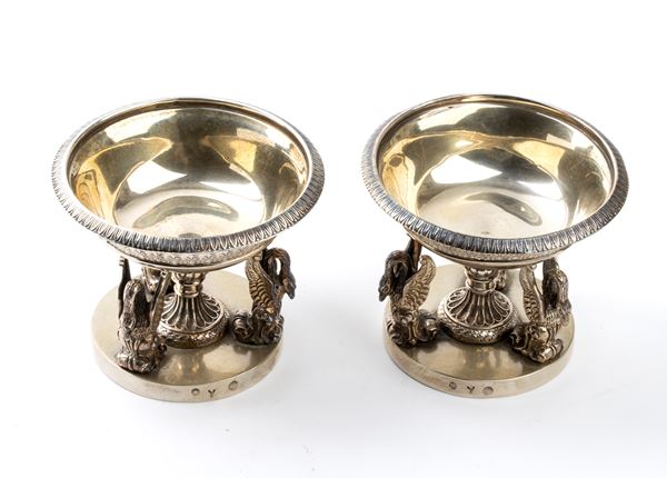 Pair of Italian silver salt cellars, Milan 1812-1850