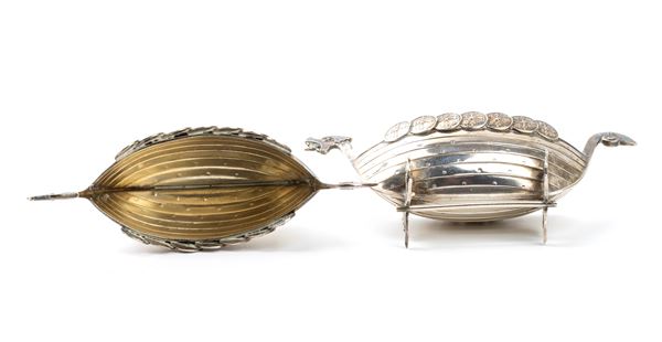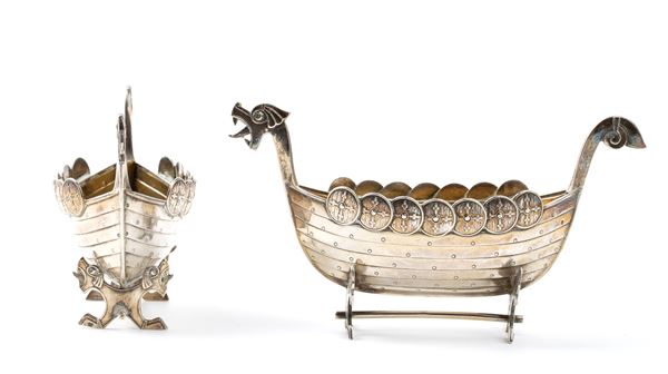 in the shape of Viking boats with dragon heads and shields as decoration.